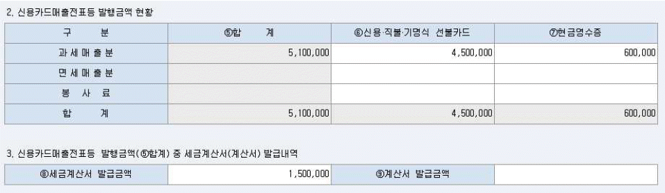 다음 화면은 핵심ERP 신용카드발행집계표/수취명세서 화면의 일부이다. 화면에 대한 설명으로 옳지 않은 것은?