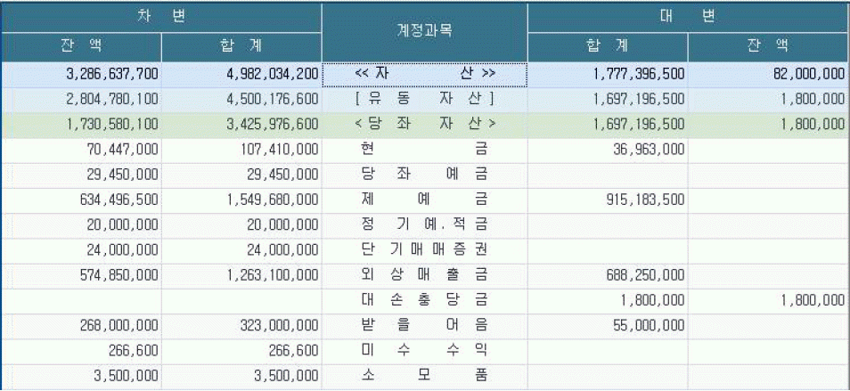 다음 화면은 3월 말 현재 핵심ERP 합계잔액시산표의 일부이다. 4월 1일 대손요건이 충족된 외상매출금 대손금 2,000,000원이 확정되었다. 이에 따른 회계처리로 옳은 것은?