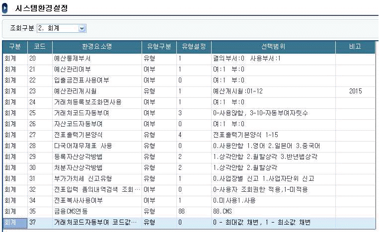 다음은 핵심ERP 회계모듈 사용에 필요한 시스템환경설정메뉴 화면이다. 다음 설명 중 가장 옳지 않은 것은 ?