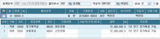 다음 화면은 회사가 1년 만기 정기예금을 가입한 후 회계처리를 수행한 결과이다. 본 정기예금에 대한 이자를 만기에 수령하기로 약정한 경우, 당해 기말결산분개를 나타낸 것으로 가장 옳은 것은 무엇인가? (단, 이자율은 2.5%, 월할계산)