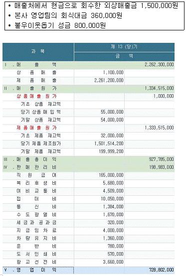 다음 화면은 손익계산서의 일부이다. 회계담당자는 12월 중 [보기]의 거래에 대한 회계처리가 누락된 것을 확인하였다. 누락된 거래를 적절하게 회계처리 후 그 결과가 반영된 손익계산서 상의 영업이익은 얼마인가?