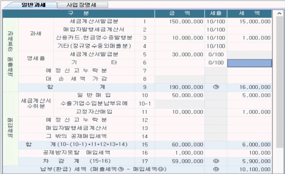 다음 화면을 보고 부가가치세 신고시 첨부해야 할 부속서식으로 적절하지 않은 것은?