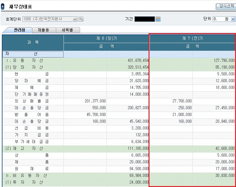 ㈜한국전자는 2015년 ERP를 도입하였다. 비교식 재무제표를 작성하기 위하여 전기분 재무제표를 입력할 메뉴로 가장 적당한 것은 무엇인가?
