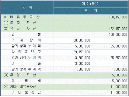 다음 화면은 재무상태표의 일부분이다. 영업부에서 사용중인 차량을 매각(취득금액 20,000,000원, 감가상각누계액2,000,000원)하고 회계처리를 누락하였다. 차량 매각분에 대한 회계처리 후 유형자산 금액은 얼마인가?