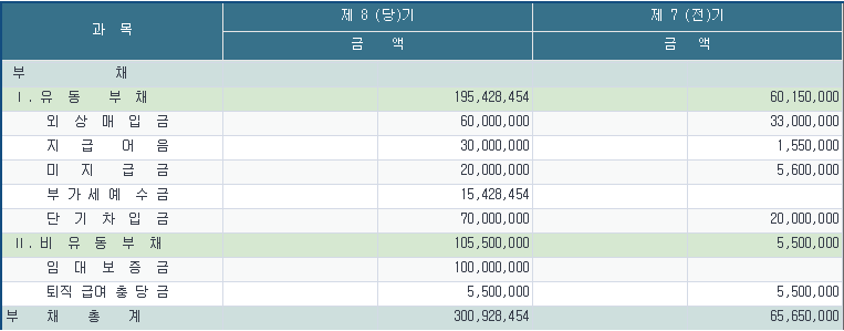 다음은 당사 재무상태표의 일부화면이다. 이를 기초로 하여 일반기업회계기준에 의한 당기 재무제표 작성시 ‘매입채무’ 계정과목으로 기재될 금액은 얼마인가?