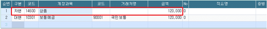 다음 전표입력 화면의 표시된 부분에 반영될 거래가 아닌 것은 다음 중 무엇인가?