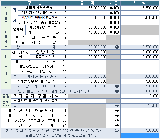 다음 화면의 부가가치세신고서를 설명한 것으로 옳지 않은 것은 무엇인가?