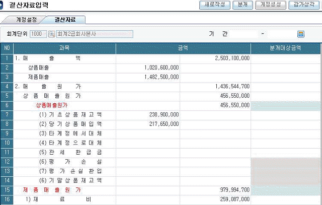 다음 화면은 핵심ERP의 결산자료입력 프로세스이다. 다음 중 본 메뉴를 이용하여 자동결산을 수행 할 수 없는 항목은?
