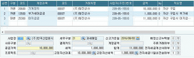 다음 화면의 거래내역을 핵심ERP에 입력할 경우 반영되는 장부 및 재무제표에 해당하지 않는 것은?