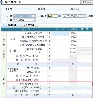 다음 화면의 표시된 부분(14란)에 반영될 거래는?