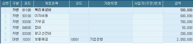 다음 화면의 거래내역 중 손익계산서의 영업이익에 영향을 미치는 금액은 얼마인가?