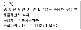2015 년 5 월 31 일에 비영업용 승용차를 푸른자동차㈜에서 구입 후 신안은행 보통예금계좌로 이체하였다. [보기]를 보고 전표입력을 실행 후 2015 년 1 기 확정신고 기간에 구입한 고정자산 매입금액은 얼마인가? * 본 문제는 시뮬레이션 문제로서 [실기메뉴]의 메뉴를 활용하여 문제에 답하시오.