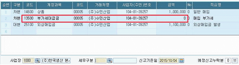 다음 전표입력화면의 부가세대급금계정 금액란에 0원으로 입력되는 거래가 아닌 것은 무엇인가?