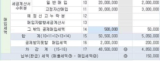 다음 화면은 ㈜한국생산의 부가가치세신고서 중 일부이다. 공제 가능한 매입세액은 얼마인가?