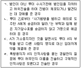甲에게 범인은닉ㆍ도피죄가 성립되는 것만을 모두 고르면?