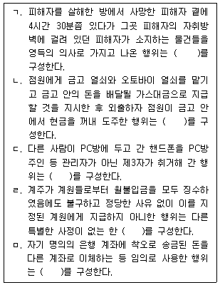 재산범죄와 관련한 다음 문장에서 괄호 안 어느 곳에도 들어갈 수 없는 죄명은? (다툼이 있는 경우 판례에 의함)