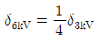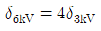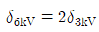 배전선로의 전압을 3kV에서 6kV로 승압하면 전압강하율(δ)은 어떻게 되는가? (단, δ3kV는 전압이 3kV일 때 전압강하율이고, δ6kV는 전압이 6kV일 때 전압강하율이고, 부하는 일정하다고 한다.)