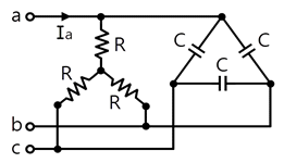 그림과 같은 부하에 선간전압이 Vab = 100∠30°(V)인 평형 3상 전압을 가했을 때 선전류 Ia(A)는?