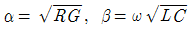 무손실 선로에 있어서 감쇠정수 α, 위상정수를 β라 하면 α와 β의 값은? (단, R, G, L, C는 선로 단위 길이당의 저항, 컨덕턴스, 인덕턴스, 커패시턴스이다.)