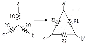 다음과 같이 Y결선을 △결선으로 변환할 경우 R1의 임피던스는 몇 Ω인가?