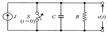 회로에서 t=0초일 때 닫혀있는 스위치 S를 열었다. 이때 dv(0+)/dt의 값은? (단, C의 초기 전압은 0V이다.)