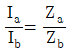 단상 변압기 2대를 병렬운전할 경우 각 변압기의 부하전류를 Ia, Ib, 1차측으로 환산한 임피던스를 Za, Zb, 백분율 임피던스 강하를 za, zb, 정격용량을 Pan, Pbn이라 한다. 이때 부하 분담에 대한 관계로 옳은 것은?