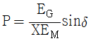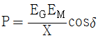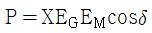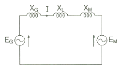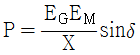 그림과 같은 2기 계통에 있어서 발전기에서 전동기로 전달되는 전력 P는? (단, X = XG + XL + XM 이고 EG, EM은 각각 발전기 및 전동기의 유기기전력, δ는 EG와 EM 간의 상차각이다.)