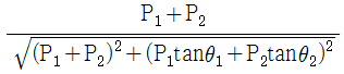 한 대의 주상변압기에 역률(뒤짐) cosθ1, 유효전력 P1(kW) 의 부하와 역률(뒤짐) cosθ2, 유효전력 P2(kW)의 부하가 병렬로 접속되어 있을 때 주상변압기 2차 측에서 본 부하의 종합역률은 어떻게 되는가?