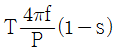 극수 P의 3상 유도전동기가 주파수 f(Hz), 슬립 s, 토크 T(N·m)로 회전하고 있을 때의 기계적 출력(W)은?
