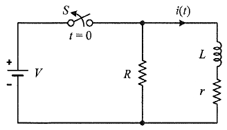 정상상태에서 t=0초인 순간에 스위치 S를 열었다. 이 때 흐르는 전류 i(t)는?