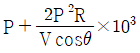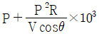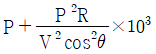 단상 2선식 배전선로의 말단에 지상역률 cosθ인 부하 P(kW)가 접속되어 있고 선로 말단의 전압은 V(V)이다. 선로 한 가닥의 저항을 R(Ω)이라 할 때 송전단의 공급전력(kW)은?
