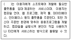 클라우드 서비스는 제공하는 자원의 레벨에 따라 분류할 수 있다. 다음 중 괄호 안에 들어갈 알맞은 용어는 무엇인가?