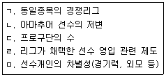 선수시장에서 프로선수의 몸값에 영향을 미치는 요인을 모두 고른 것은?