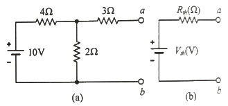 그림 (a)의 회로를 그림 (b)와 같은 테브닌 등가회로로 변경했을 때, 테브닌 등가전압 Vth(V)와 테브닌 등가저항 Rth(Ω)는 각각 약 얼마인가?