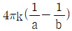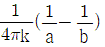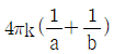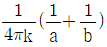 반지름이 a(m), b(m)인 두 개의 구 형상 도체 전극이 도전율 k인 매질 속에 거리 r(m) 만큼 떨어져 있다. 양 전극 간의 저항(Ω)은? (단, r》a, r》b 이다.)