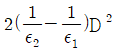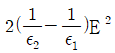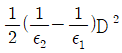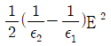 유전율이 ε1, ε2인 유전체 경계면에 수직으로 전계가 작용할 때 단위 면적당 수직으로 작용하는 힘(N/m2)은? (단, E는 전계(V/m)이고, D는 전속밀도(C/m2)이다.)