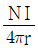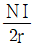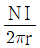 환상 솔레노이드 철심 내부에서 자계의 세기(AT/m)는? (단, N은 코일 권선수, r은 환상 철심의 평균 반지름, I는 코일에 흐르는 전류이다.)