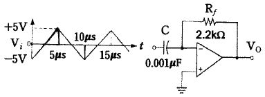 다음과 같이 미분 연산증폭기에 삼각파 입력이 공급될 때, 출력전압의 범위는?