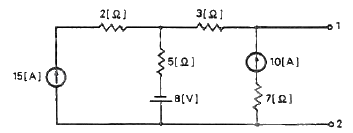 다음과 같은 회로망에서 단자 1, 2에서 바라본 테브난 등가저항의 크기는?