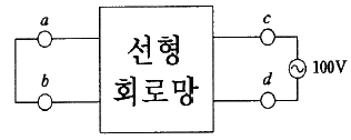 선형 회로망에서 단자 a, b 간에 200V의 전압을 가할 때 c, d에 흐르는 전류가 10A이었다. 반대로 같은 회로에서 c, d간에 100V를 가하면 a, b에 흐르는 전류는 몇 A 인가?