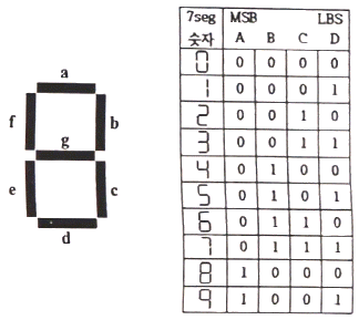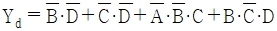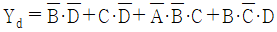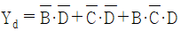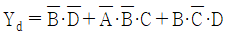 아래는 7 세그면트 LED 디스플레이의 진리표이다. a~g의 세그먼트 중에서 d세그먼트를 동작시키기 위한 출력 Yd의 논리회로의 식은? (단, 1010 ~ 1111은 don't care 조건이다.)
