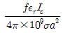반지름 a(m)의 원형 단면을 가진 도선에 전도전류 ic=Icsin2πft(A)가 흐를 때 변위전류밀도의 최대값 Jd는 몇 A/m2가 되는가? (단, 도전율은 σ(S/m)이고, 비유전율은 εr이다.)