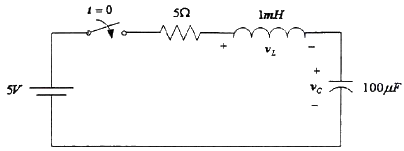 회로에서 스위치가 오랫동안 개방되어 있다가 t=0에 닫았을 때 바로 직후의 vL(0+)과 vC(0+)로 적절한 것은? (단, t<0 에서 vC=3V이다.)