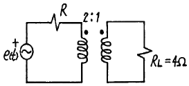 다음 회로에서 부하(Load)에 최대로 전력을 공급하기 위한 R의 값은?