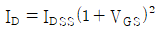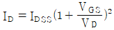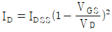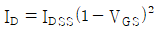 JFET에서 포화 드레인 전류 ID를 나타낸 식은? (단, IDSS는 VGS 일 때 최대 드레인 전류이다.)