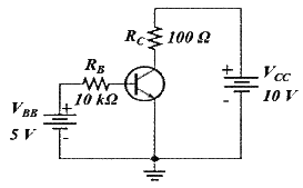 다음 회로의 컬렉터 전류(IC)는 몇 mA 인가? (단, VBE = 0.7V, 트랜지스터의 βDC=150)
