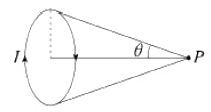 원형 선전류 I(A)의 중심축상 점 P의 자위(A)를 나타내는 식은? (단, θ는 점 P에서 원형전류를 바라보는 평면각이다.)