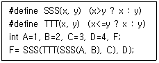 다음은 C언어 프로그램의 일부이다. F의 값으로 옳은 것은?