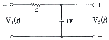 다음 그림의 회로망에서 V1(t) = e-2tu(t)일 때 V2(t)는? (단, 콘덴서는 미리 충전되어 있지 않다.)