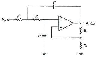다음 저역통과필터회로의 임계주파수는 약 몇 kHz 인가? (단, R1=R=1kΩ, R2=10kΩ, C=20nF 이다.)